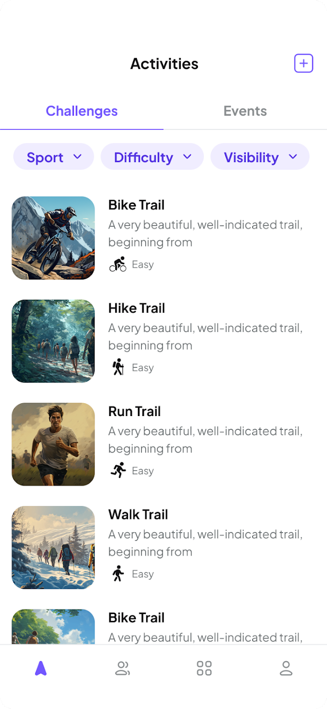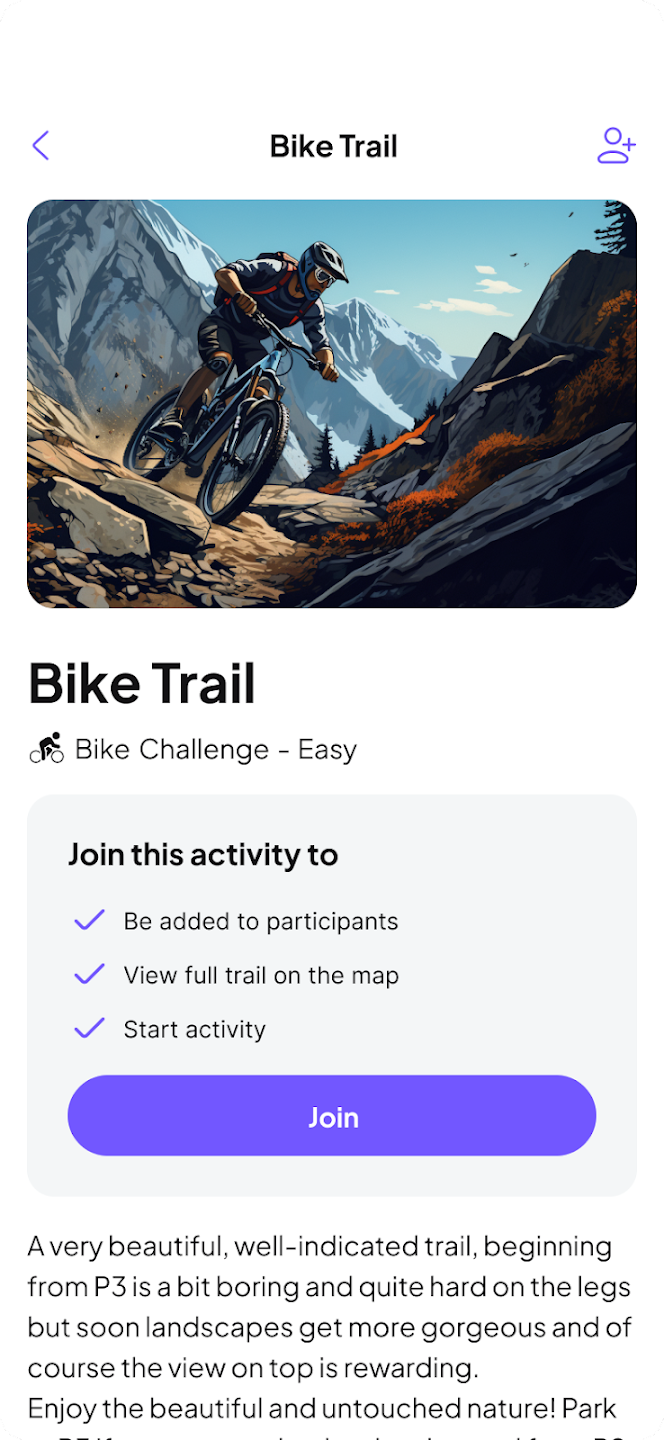 Whether it's a solo or group event, you can create your activities based on preferences.